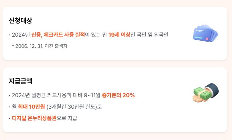 • 참여 조건 : 2024년 동기간 대비 월 카드 사용액 증가분 존재 시